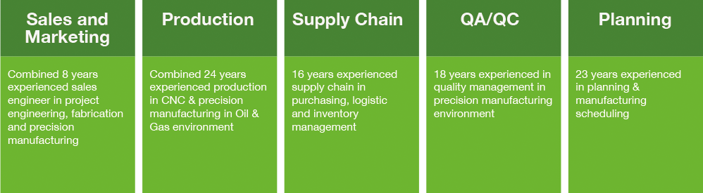 The management and senior manufacturing team at I Precision have a combined experience of not less than 90 years in the high end manufacturing and precision engineering industry, primarily supporting the Oil & Gas sector for machining and cladding services.